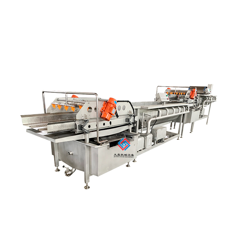 凈菜加工成套生產(chǎn)線是針對(duì)多種的蔬菜進(jìn)行清洗和加工處理的,可以將蔬菜表面的泥土進(jìn)行清洗干凈,還能夠?qū)κ卟诉M(jìn)行農(nóng)殘?zhí)幚恚梢詫⑹卟说霓r(nóng)藥進(jìn)行分解,提升蔬菜的品質(zhì)程度,通過清洗之后的蔬菜輸送到震動(dòng)篩進(jìn)行麗水處理,能夠?qū)⑹卟松洗蟛糠值乃譃r干,之后輸送到風(fēng)干設(shè)備上可以將蔬菜的表面水分更加充分的蒸發(fā),之后再進(jìn)行整理過后可以進(jìn)行真空包裝處理,經(jīng)過真空包裝處理之后的蔬菜可以延長(zhǎng)保鮮時(shí)間,建議填充質(zhì)量的氮?dú)饪梢允贡ur效果好。