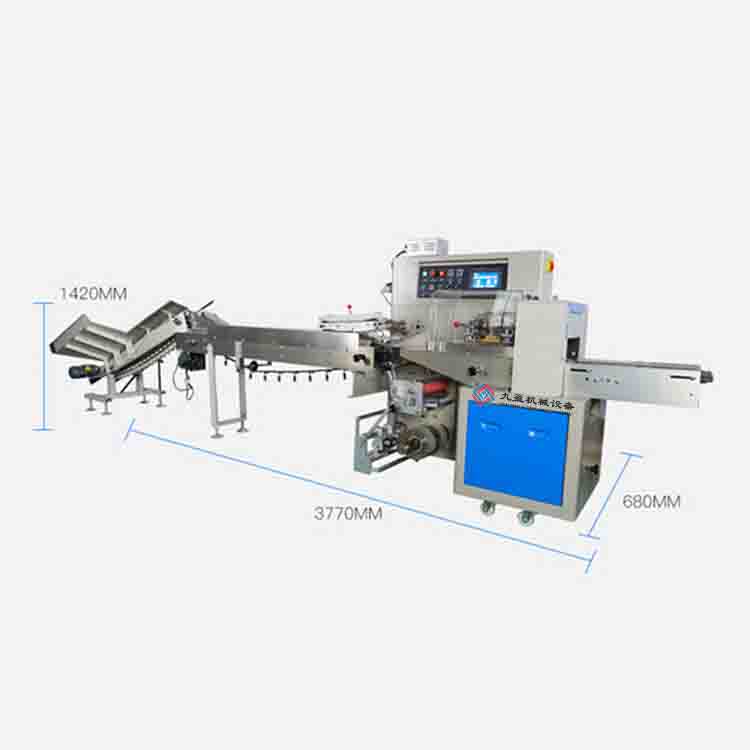 技術(shù)參數(shù): 型號(hào):JYB-350 袋子形狀:背帶式包裝(可定制) 縱封/橫封紋路:網(wǎng)紋式包裝/直紋式包裝 卷膜直徑:350mm 制袋寬度:50-160mm 可選配置:打碼機(jī) 充氣裝置 烙餅器 料理機(jī) 包裝材料:能單面熱封包裝膜材料 電壓:220V 功率:2.6kw 機(jī)器尺寸:4020*770*1450mm 機(jī)器重量:580kg 制袋長(zhǎng)度:65-190/120-280mm